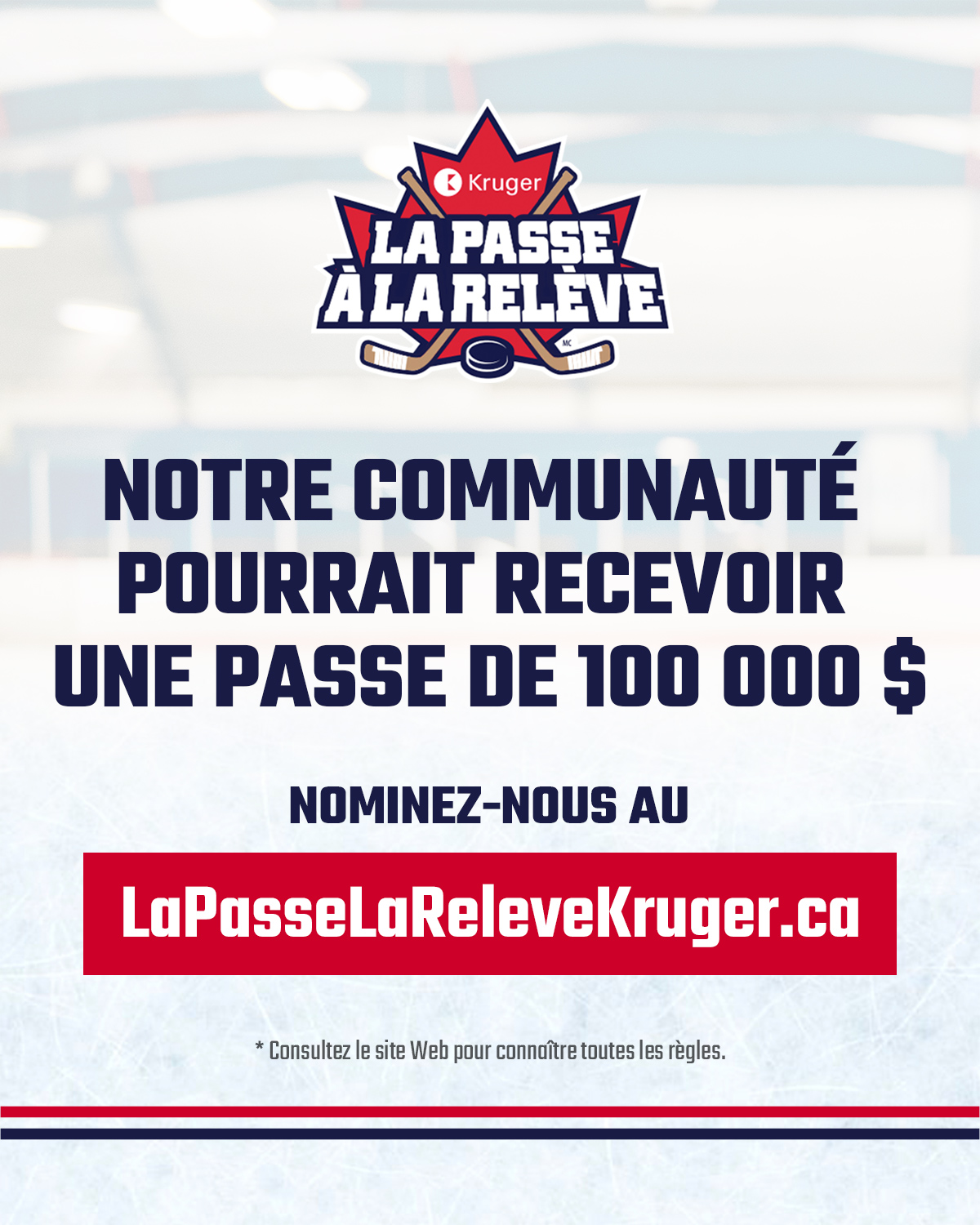 Nous faisons appel à notre communauté! 🧡🏒 Aidez à soutenir nos joueurs en nominant notre association de hockey mineur dans le cadre de la campagne @KrugerBigAssist. Votre nomination pourrait augmenter nos chances de gagner 100 000 $ pour rendre le hockey plus accessible auprès des jeunes. Nominez notre association dès aujourd’hui au passealarelevekruger.ca!